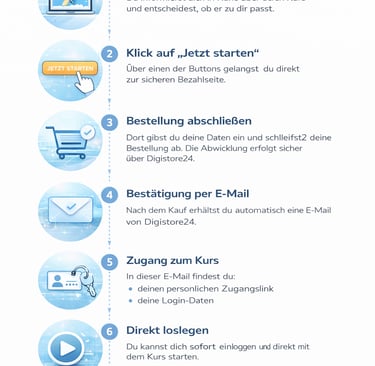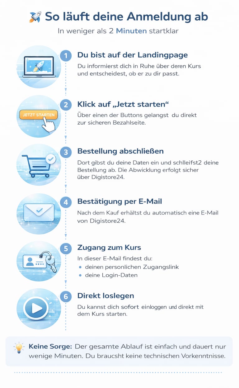 Du informierst dich in Ruhe über den Kurs und entscheidest, ob es zu dir passt.